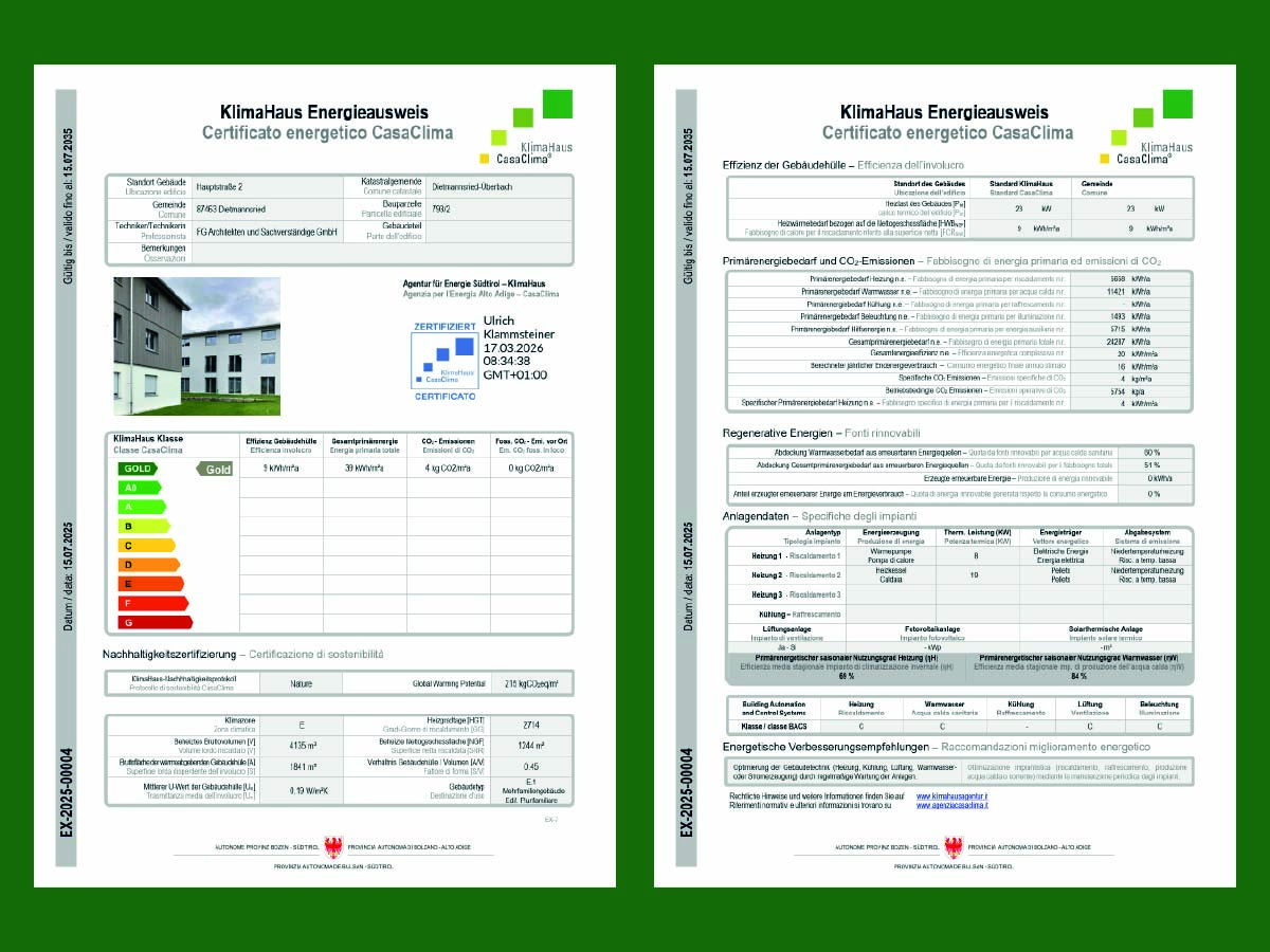 Die KlimaHaus-Zertifizierung in der höchsten zu vergebenden Klasse, belegt nicht nur die hohe energetische Qualität der Gebäudehülle im Zusammenspiel mit der Anlagentechnik, in dem Standard in eines KfW Effizienzhaus 40, sondern schafft die Grundlagen den zukünftigen Bewohnern auch dauerhaft niedrige Nebenkosten und ein gesundes, behagliches Wohnklima zu bieten.